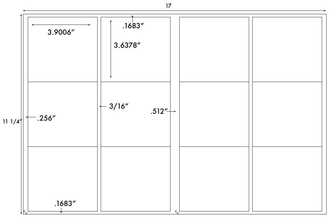 Steadfast Die-Cut Label 11×17 Template: SF5791 11 x 17 Size Sheets, Die-cut Label Templates Sheet Size: 11 x 17 12 UP 3.9006 x 3.6378 Download Template